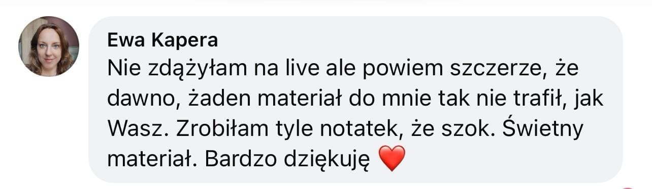 3 SESJE LIVE (każda po 90 minut) - w zamkniętej Grupie na FB w dniach 10/09-12/09 o 13:30 PL
